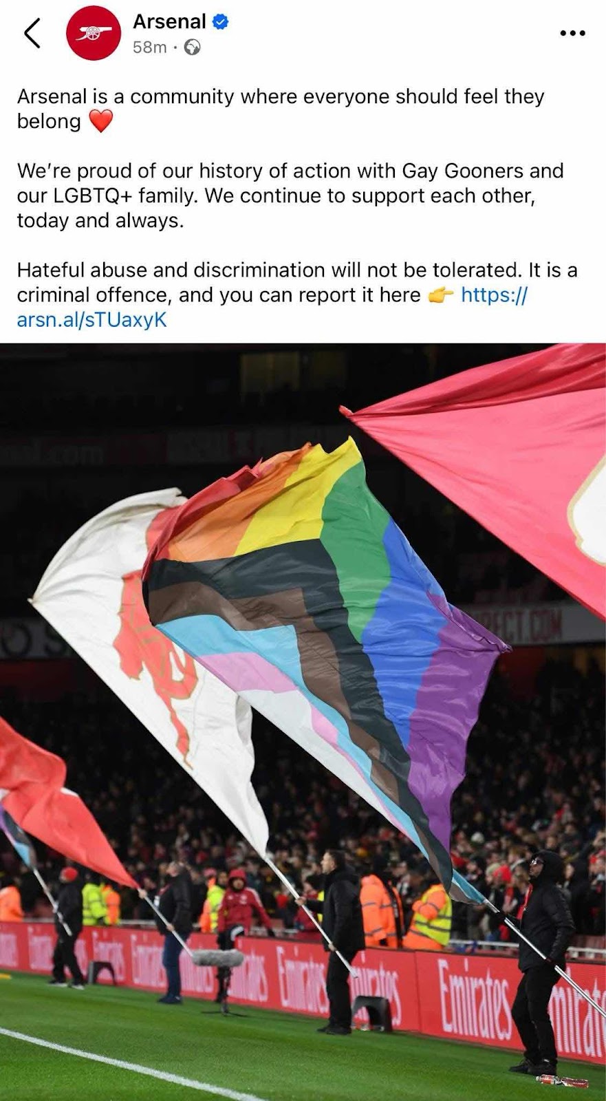 Arsenal have posted something super supportive on Facebook. 🏳️⚧️🏳️🌈